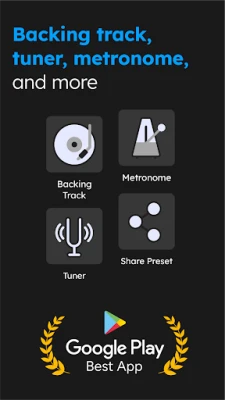 Guitar Tuner, Backing track and preset sharing are additional features for guitarists to feel home!