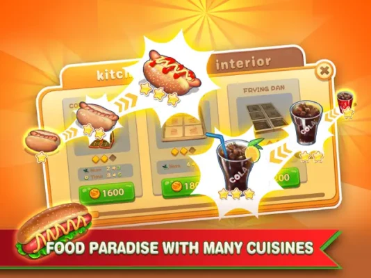 - Cooking more cuisines with unlock new restaurants. New levels and kitchen around the world added regularly