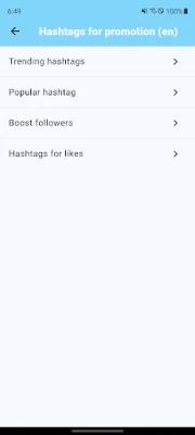 You can use this app as a hashtag generator, you can easily find new hashtags to promote your posts. All found hashtags will be displayed as a list. You can copy this list of hashtags in whole or separately. Also, for the app to work properly, an Internet connection is required.