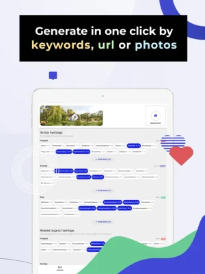 Enter your keywords, upload a photo, or paste the post link and generate the most proper Instagram tags. For your convenience, the app sorts hashtags by difficulty/popularity. Plus, you get the tips for what hashtags and how many to use.