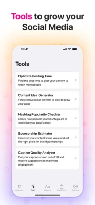 - Input your post's caption and let AI generate matching hashtags