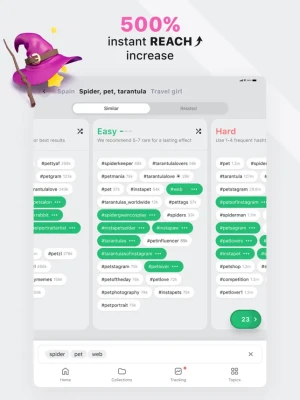 Hashtag Generator Reachtags is an ai-based app to get free instagram followers by adding hashtags to Instagram posts. Few taps to get likes, grow posts reach 500%+, get into reel trends and get insta followers from tops and recommendations. Thanks to a unique algorithm for selection and a huge base of 18m of #hashtags, any influencer will be able to create effective tags sets. No need to buy ig followers anymore, now you can get targeted fallowers with our free hashtag generator. The app will show detailed statistics and posts preview for each hashtag.