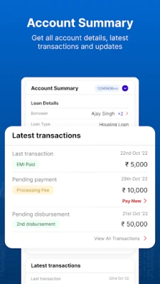 It enables existing customers to access all their loan account related information like accounts summary, payment details, disbursement details coupled with the flexibility to request for Tax certificates, statements of accounts and disbursement. Also, options like Branch Locator, product details and FAQ (frequently asked questions) make managing your loans an extremely easy task.