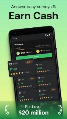 📈 Track your earnings: Keep track of your earnings and available paid surveys, games, and offers through our real-time dashboard, so you always know how much money and instant cash you've earned.
