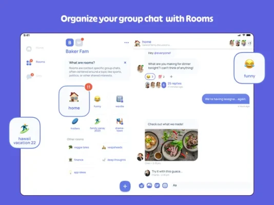 Tired of losing track of important messages? HeyFam lets you organize chats by topic, making it easy to find recipes, trip plans, and more. Create Rooms (like channels on Slack or Discord) but with a friendly and clean layout, HeyFam is built specifically for families.