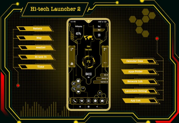 Introducing Hi-tech Launcher 2 - Future UI, a powerful and user-friendly application that offers a range of features such as AppLock, HideApp, Hitech Wallpaper, Folder, and Themes. This app is designed to enhance the style of your Android phone, giving it a futuristic and next-generation look.