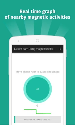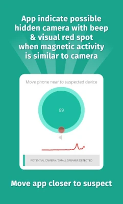 App analyses magnetic activity and warn you if it find magnetic activity similar to camera.