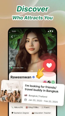 You want to explore—but who with? The advice is always the same: “Just go out and meet fresh people!” But it’s not always that easy, especially when you're not fluent in Thai, Filipino, Japanese, Korean, Chinese etc. or unsure where to begin. You’re not just looking for someone — you’re looking for the right kind of connection. Chat right, meet right, dating right!