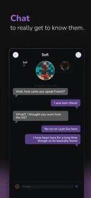 We’re a new way to connect, chat & meet - where personality and interests are valued as much as the physical. Your profile picture appears blurry to all users. With each message exchanged, part of your photo is revealed to your match and vice versa!