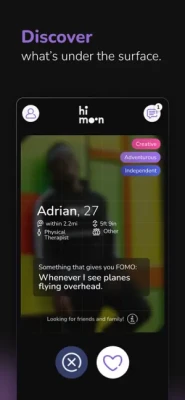 Personality over pixels - are you curious? HiMoon is the new dating app for the entire LGBTQ + community. Whatever your gender, or your preferences, you’re welcome!