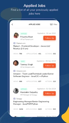 With hirist.tech job search app, you can filter by location, experience level, company name, and job role to discover job opportunities that match your preferences.
