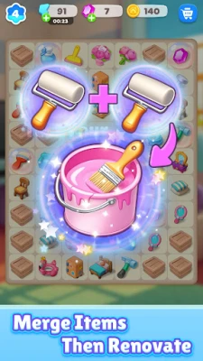 =Effortless Merging= Enjoy the simplicity of merging as you combine like elements to gather essential materials for your renovation projects, fostering growth and creativity.