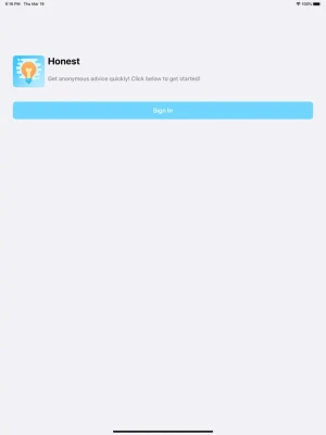 Honest is a social media app that lets users stay anonymous while seeking advice from others! Whether you're looking for personal advice, relationship advice, or just a listening ear - Honest offers a safe, secure space to share your thoughts and get opinions from the community. With Honest, anonymity is key so you can feel comfortable knowing that your identity is protected while receiving honest feedback. Download Honest now and start getting the help you need!
