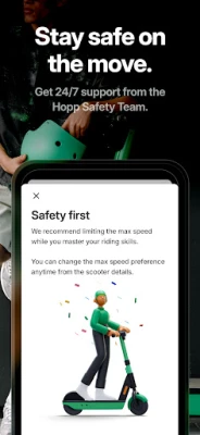 Hopp's in-app Safety Toolkit features a beginner mode, a riding tutorial, safety tips, and a guide to local traffic rules to help you stay safe on the move.