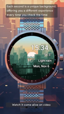The watch face offers collectable live, dynamic and animated themes that can be changed. The themes of the landscapes have an ambient vibe during daylight, which tends to quiet down after sunset, while cityscapes light up with millions of colours after dusk.