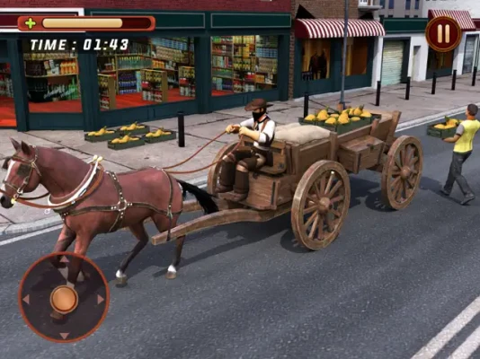 Select your horse once you unlocked them, ride your horse cart to the city and deliver the crop like fruits and vegetables. You can buy more things or unlock the horses with this coins earned. You will be living in countryside and you need to transport the goods to city and other area where ever required.