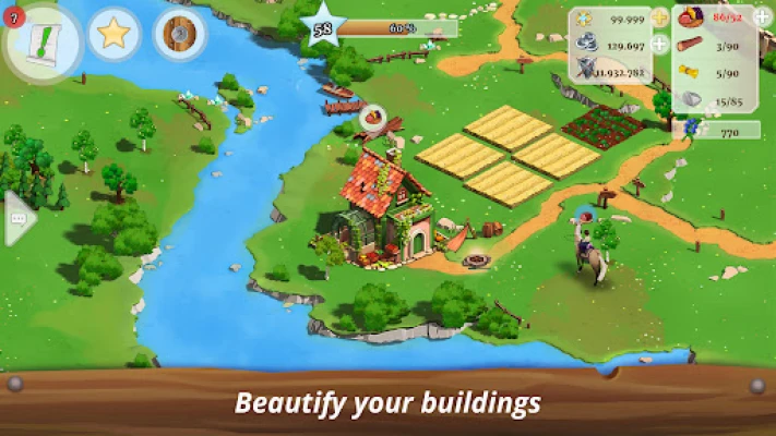 Your village consists of many houses, all of which must be built and maintained. You can modernize farms, stables, townhouses and many more according to your taste. You can also move all the buildings around and decide for yourself where the houses in your village should be best placed.