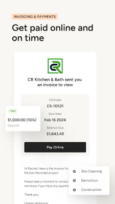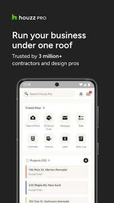 Trusted by over 3 million builders, remodelers, and designers, Houzz Pro is here to help you nail every next step of any project. Stay connected with clients and leads, create professionally branded documents, collect payments in an instant/send invoices in an instant, and get more done in less time—all from the jobsite or showroom.