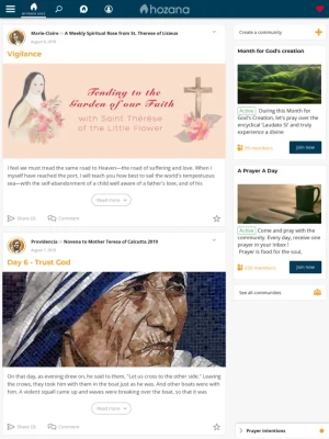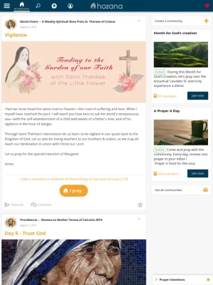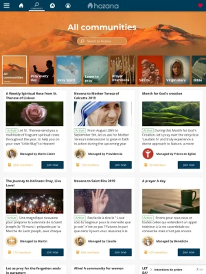 Discover hundreds of prayer communities around various spiritual themes on the Hozana app. Let us help you grow your prayer life every day of the year!