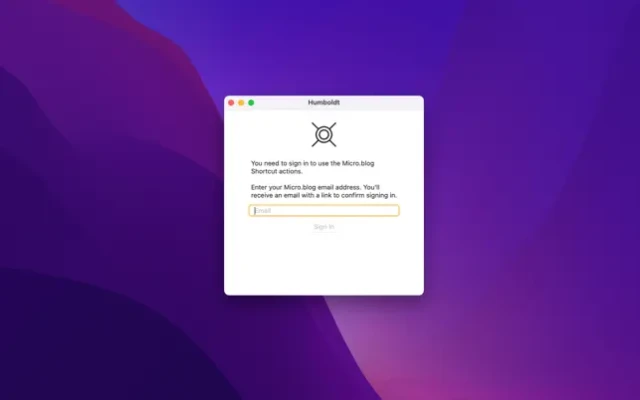 All you have to do is supply Humboldt with your Micro.blog account email and Humboldt will walk you through the sign-on process. You'll then be ready to start building your Shortcuts.