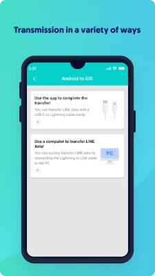 Quickly and easily transfer LINE data from Android to iPhone by using the new USB-C to Lightning cable or connecting an OTG adapter to the old Lightning to USB cable.
