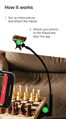 To record games, you only need a smartphone with the idChess app installed and a tripod to mount the smartphone above the board.