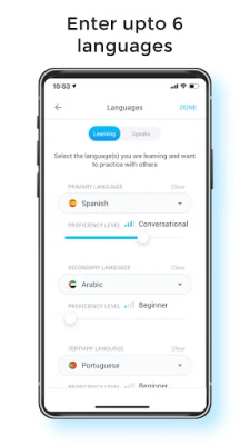 - Select up to 3 language(s) you speak and up to 3 that you are practicing