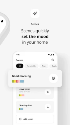 • Set the scenes you need and trigger them with schedules, a shortcut button or use the app.