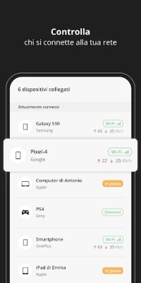 Verifica i dispositivi connessi alla tua rete e controlla la velocità di navigazione di ognuno.