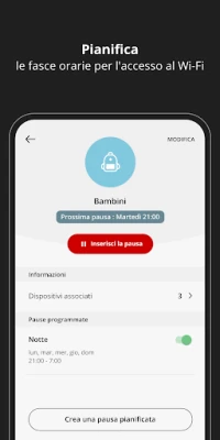 Ritagliati un momento di digital detox, impostando lo spegnimento automatico della connessione nelle fasce orarie desiderate.