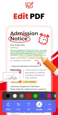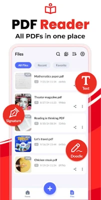 Automatically scan and list all PDFs on your device, giving you quick access to them all. Easily doodle, add text, and sign with different colors, enjoying a lot of convenience with this PDF Reader.