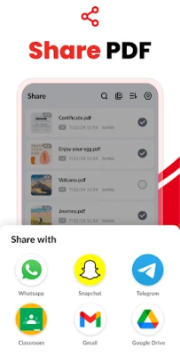 Easily send and share converted PDF files via social media, Bluetooth, Email, quick share, etc.