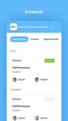 For members of Impact Fitness and Nutrition to reserve their place in a class, sign up for gym events, and general account management like updating headshots and credit card on file.