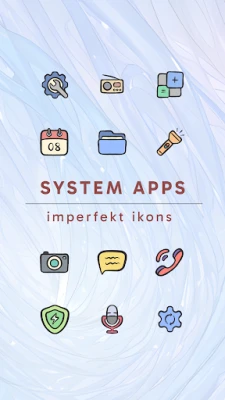 imperfekt icon pack showcases hand-drawn icons and bring them to life with gentle, down-toned colors, combining simplicity with a modern look. Every icon features playful, imperfect lines, adding a unique artistic touch to your apps. Using a soft color scheme, it creates a serene, calming and balanced look that's ideal for light wallpapers. Capturing the right balance between subtlety and character, these icons celebrate the beauty of imperfection — because perfection is a myth.