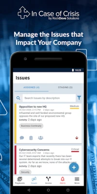 In Case of Crisis is a purpose-built platform that helps your organization prepare for, respond to, and resolve emerging issues and crises by connecting your cross-functional teams and stakeholders to actionable playbooks, collaborative workflow, and powerful communication services.