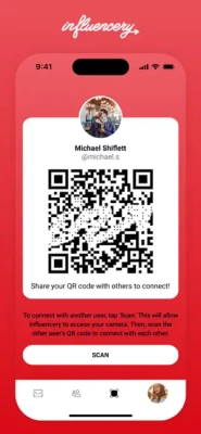 To connect with a new person, simply pull up your QR code on your phone. Your new friend will then have to open the Influencery app on their phone and scan your code – and that’s it!