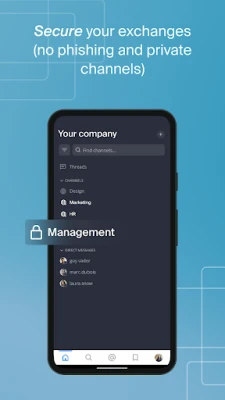 - Send messages and files or make audio/video calls with one person, a group of people or an entire public or private channel.