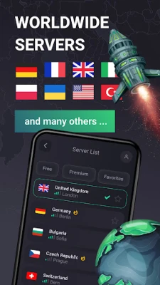Free VPN use with in-app ads or an upgrade option for ad-free service and premium locations