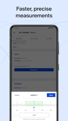 · Reduce the time spent taking sample measurements by up to 60% by syncing your mobile app with our smart tape device
