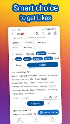 The app contains a large number of popular trending hashtags. For convenience, they are divided into categories in the Catalog. Properly chosen hashtags for a post is follower booster for your social media profile.