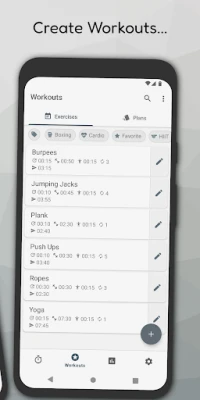 Create workouts with warm-up, preparation and exercise time, as well as break and sets or repetitions. Configure different signals (sound / vibration) and voice assistant. Add notes, pictures and videos to exercises. Large and individually configurable timer display. Show the training status as a notification when the timer is running in the background.