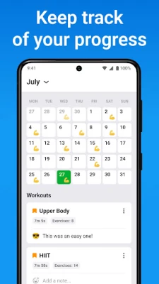Track your workouts with a Calendar. Plan and track events, and get notified when you have a training scheduled. With this feature, you will not miss a single workout and will keep track of your progress.