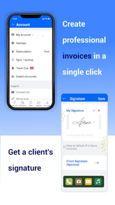 Invoice data can be sync between all of your devices automatically. Offline invoice maker. This app works even without internet connection. When internet connection back invoices will be synced to the cloud. Restore the invoice data very easily. When user login, all of the invoices, estimates will be automatically downloaded from the cloud.