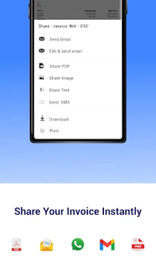 Share or send invoices through email, SMS and Whatsapp.