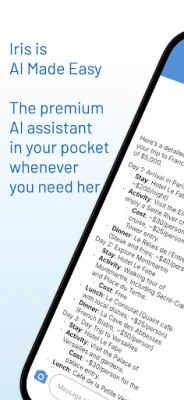 Iris is a premium personal AI assistant that you can text, built on top of the most advanced AI models in the world. With Iris, you can get instant recipe ideas, travel itineraries, personal shopping assistance, and much more. Whether you're planning a trip, looking for meal inspiration, or need help with your shopping list, Iris is here to assist you. Its capabilities are extensive, making it a versatile tool for various needs, simplifying your daily tasks with just a text.