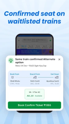 Disclaimer: This is an official IRCTC (Indian Railway Catering and Tourism Corporation) train ticket booking app that also uses public information from third-party websites. By using it, you assume responsibility for any legal implications. Feedback: https://ixigo.com/trainhelp