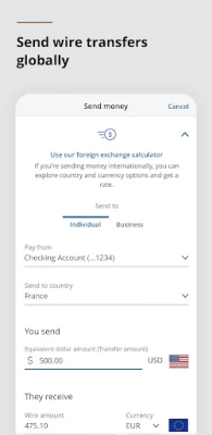• Send domestic and international wire transfers.