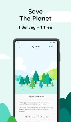 What sets us apart is our commitment to combat deforestation and rebuild natural ecosystems. For every set of polls or surveys you complete, Jagger plants a tree, allowing you to play an active role in combating global challenges related to deforestation.