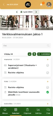 Näe treeniohjelmasi ja seuraa kehitystäsi tämän sovelluksen avulla.