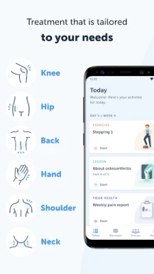 According to international guidelines, osteoarthritis treatment should primarily consist of specific exercise and education about the disease (and weight control in cases deemed necessary). Everyone who has osteoarthritis should be offered this type of treatment. Joint Academy follows these recommendations to offer a digital first-line treatment for osteoarthritis to reduce joint pain and increase physical function.